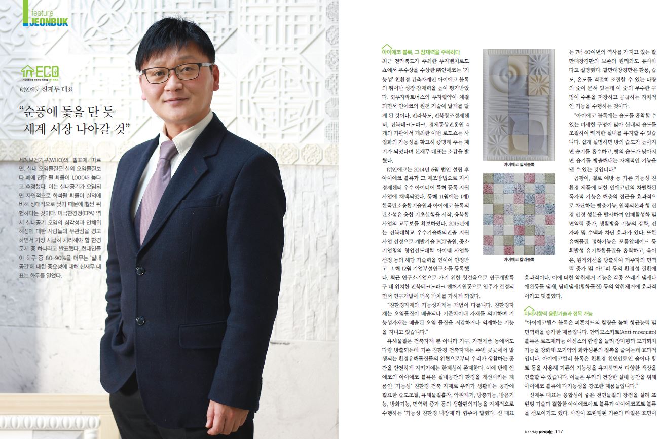 INECO Inc. was established in 2014 to create safe and pleasant indoor spaces. We developed IECO Block which is high functional eco-friendly indoor finishing materials that solve indoor environmental pollution problems using only natural materials. It can purify toxic substances and pollutants in indoor spaces. Disposing environmental toxic substances and pollutants with existing eco-friendly construction materials is almost impossible. IECO Blocks are differentiating from these materials, so they can be used conveniently and economically, and have a variety of designs and colors to add aesthetics. Our company is always doing its best to provide the best products in return for the support from our customers. We always strive to provide the best products to our customers with excellent quality and high technology to provide the best satisfaction. We will always have an attitude of learning to provide products that meet the needs of our customers by always listening to their needs. We are listening to the needs of our customers to provide the best products, so if you have any needs, please feel free to contact us. We will do our best to provide the best products with a mind that always thinks from the customer's point of view.