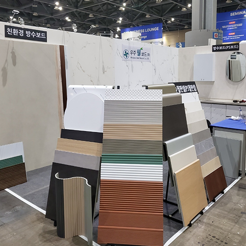 The waterproof wall panel is a popular alternative to tiles in Korea. It comes in wide sheet formats, is lightweight, easy to install, and is currently one of the most in-demand finishing materials in the Korean market.